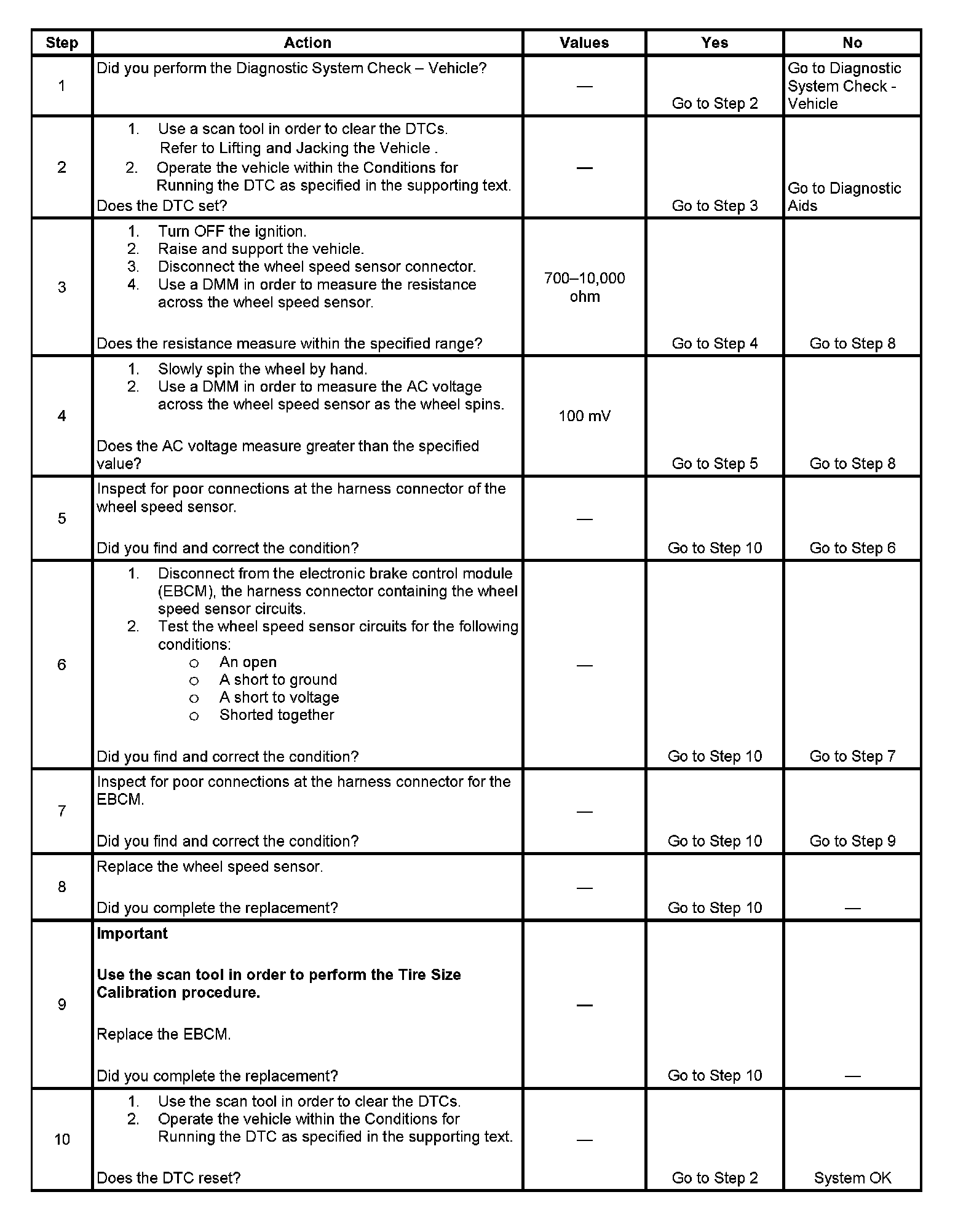 ^ The EBCM detects an open or shorted wheel speed sensor circuit for 500 milliseconds.