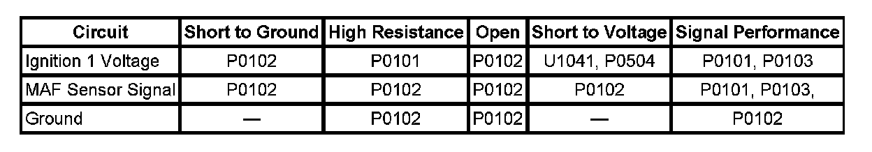 DTC P0102 Mass Air Flow (MAF) Sensor Circuit Low Voltage