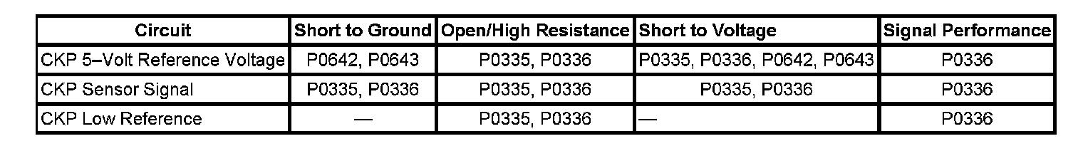 - An intermittent CKP sensor signal may cause DTC P0336 to set. Wiggle the wiring harness with the engine running and observe the CKP Sensor Pulses Missed parameter on the scan tool. If the parameter indicates anything other than 0, there is an intermittent condition.