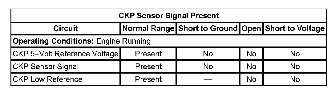 The ECM determines that the CKP sensor signal is out of range for less than 2 seconds.