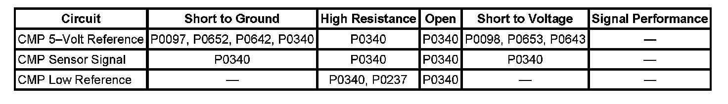 - An intermittent CMP sensor signal may cause DTC P0340 or P0341 to set. Wiggle the wiring harness with the engine running and observe the Cam Signal Missed parameter of the scan tool. If the parameter indicates anything other than 0, there is an intermittent condition.