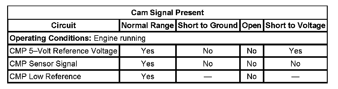 - If the CMP sensor signal is lost while running, the engine will operate normally. If the CMP sensor signal is not present on start-up, the engine will not start.