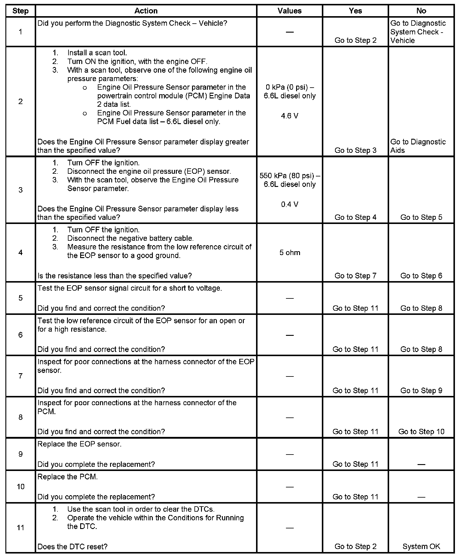 - The PCM detects that the EOP sensor signal circuit is greater than 4.6 volts.
