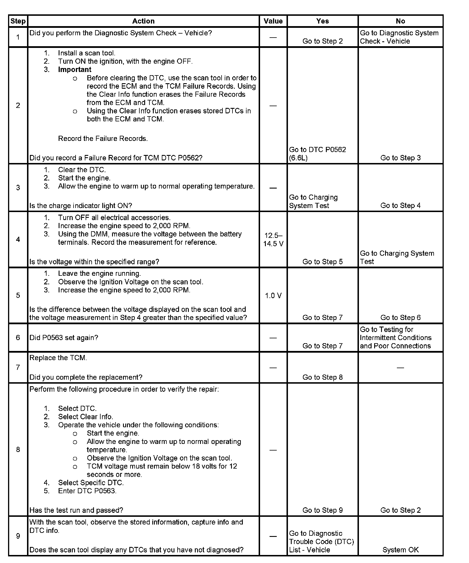 When the TCM detects high voltage, DTC P0563 sets. DTC P0563 is a type C DTC.
