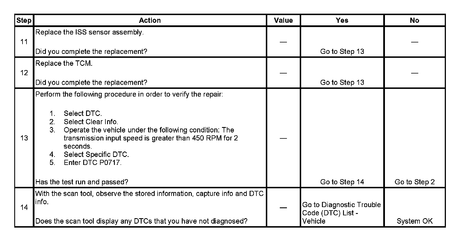 When the TCM detects a low or no input speed during high vehicle and high engine speeds, then DTC P0717 sets. DTC P0717 is a type C DTC. For California emissions vehicles, DTC P0717 is a type B DTC.