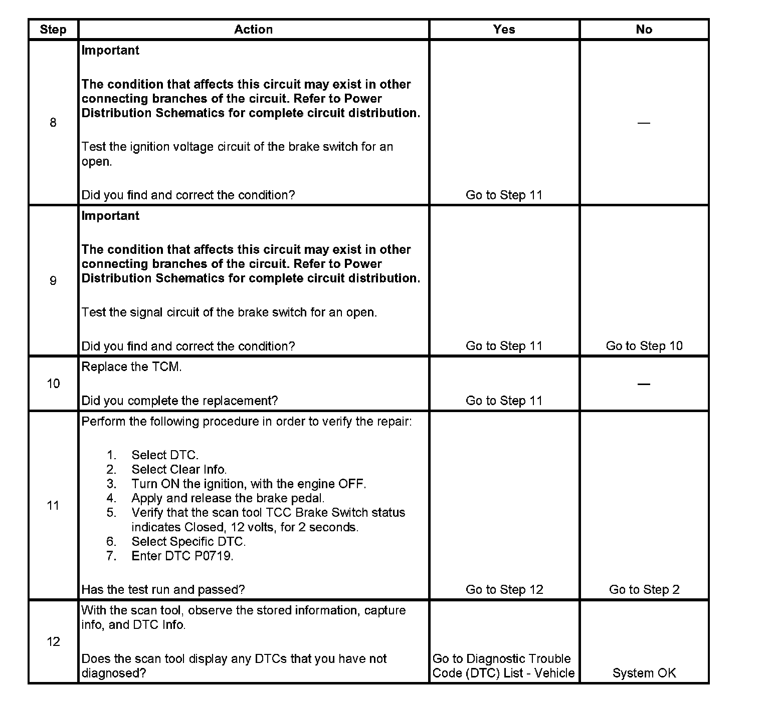 ^ The TCM stores DTC P0719 in TCM history.