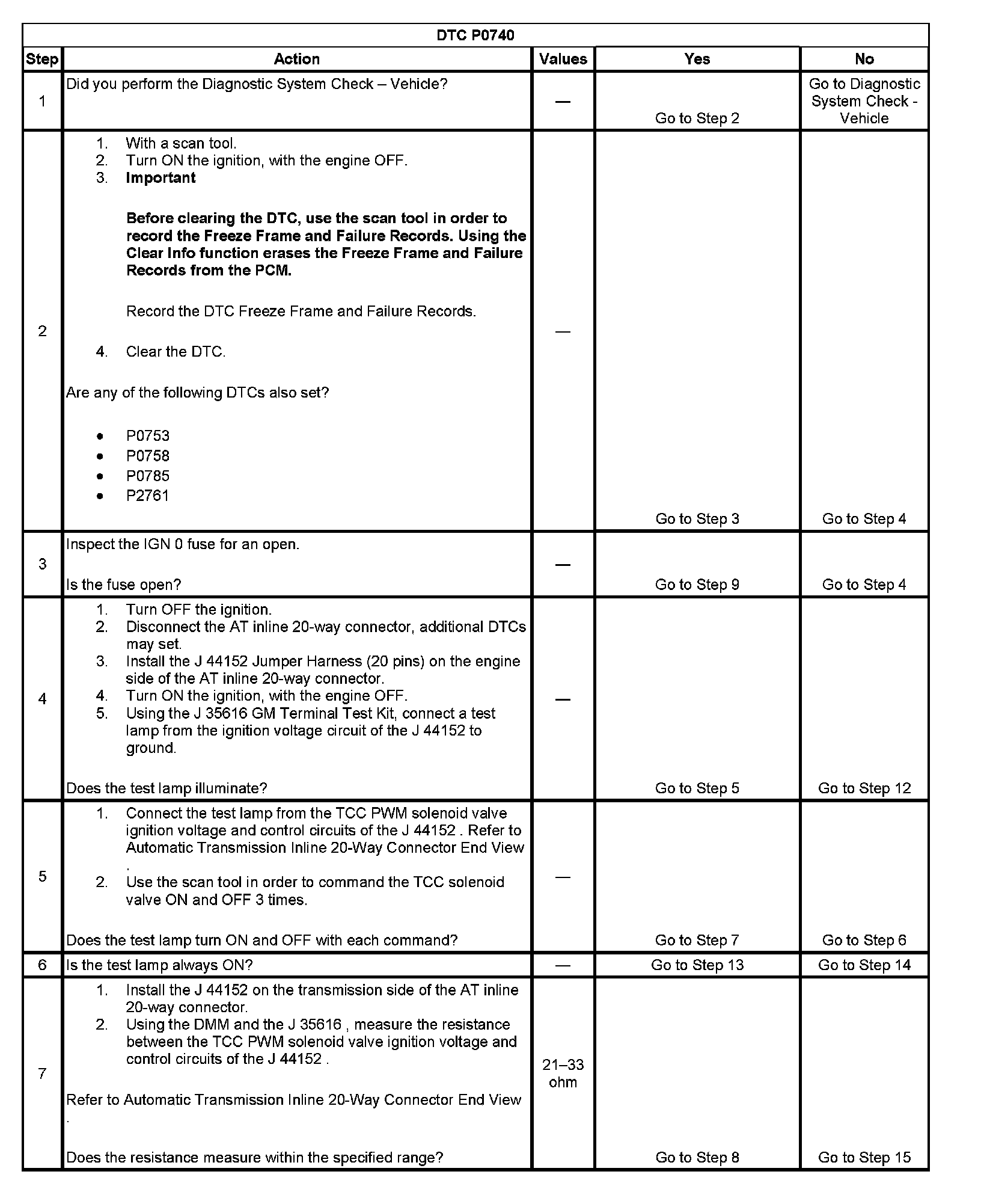 DTC P0740 Torque Converter Clutch (TCC) Enable Solenoid Control Circuit
