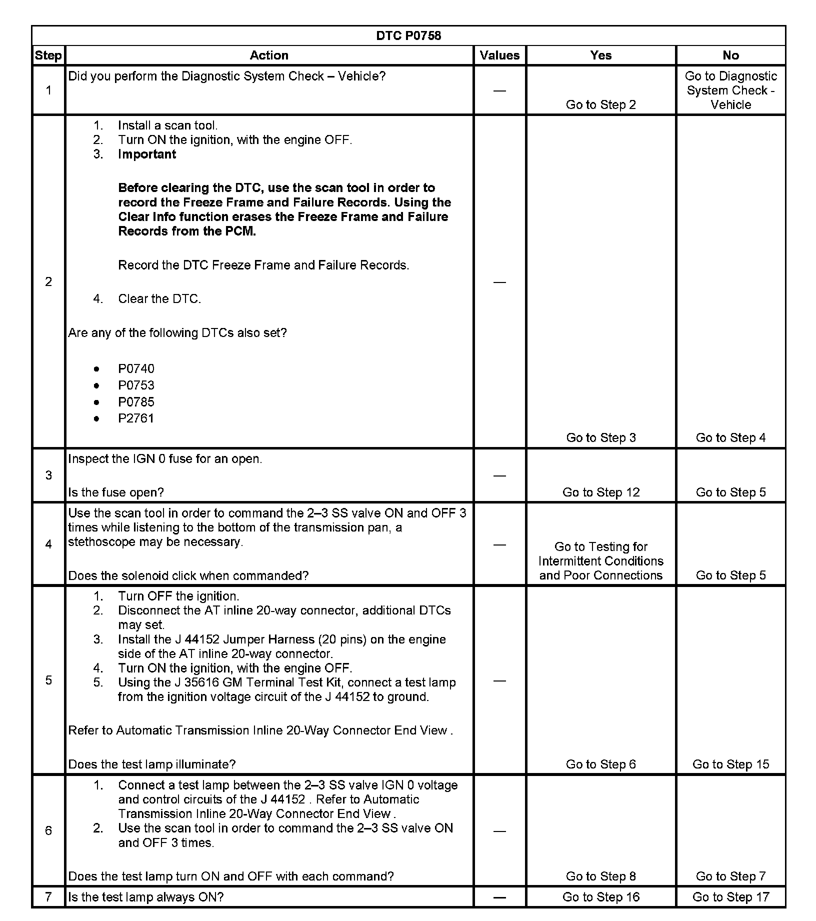 ^ The PCM stores DTC P0758 in PCM history.