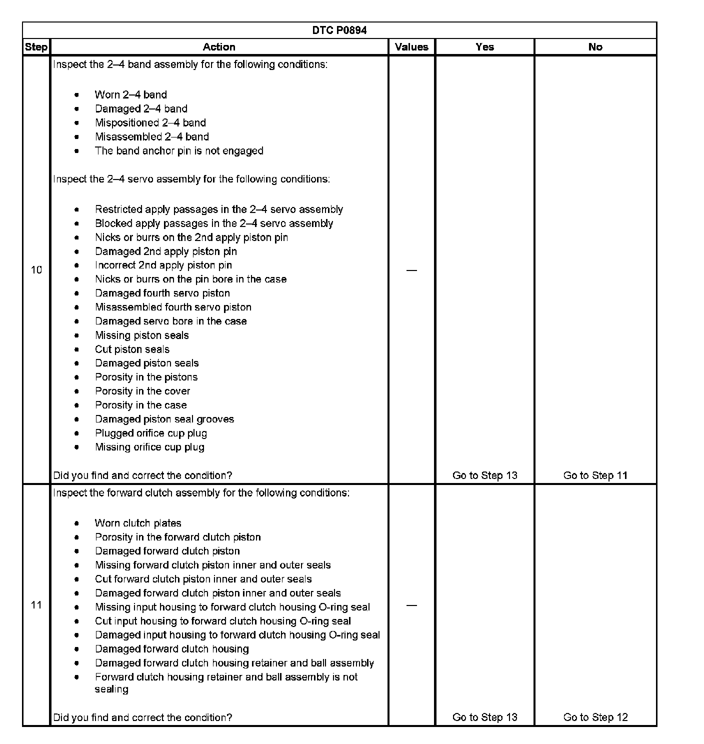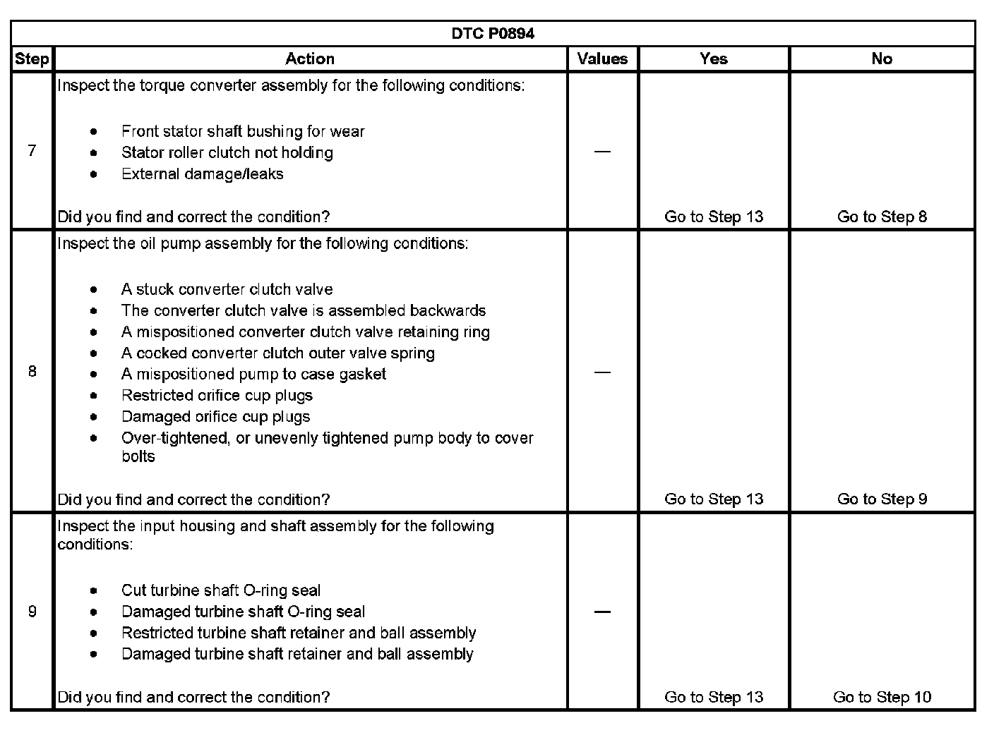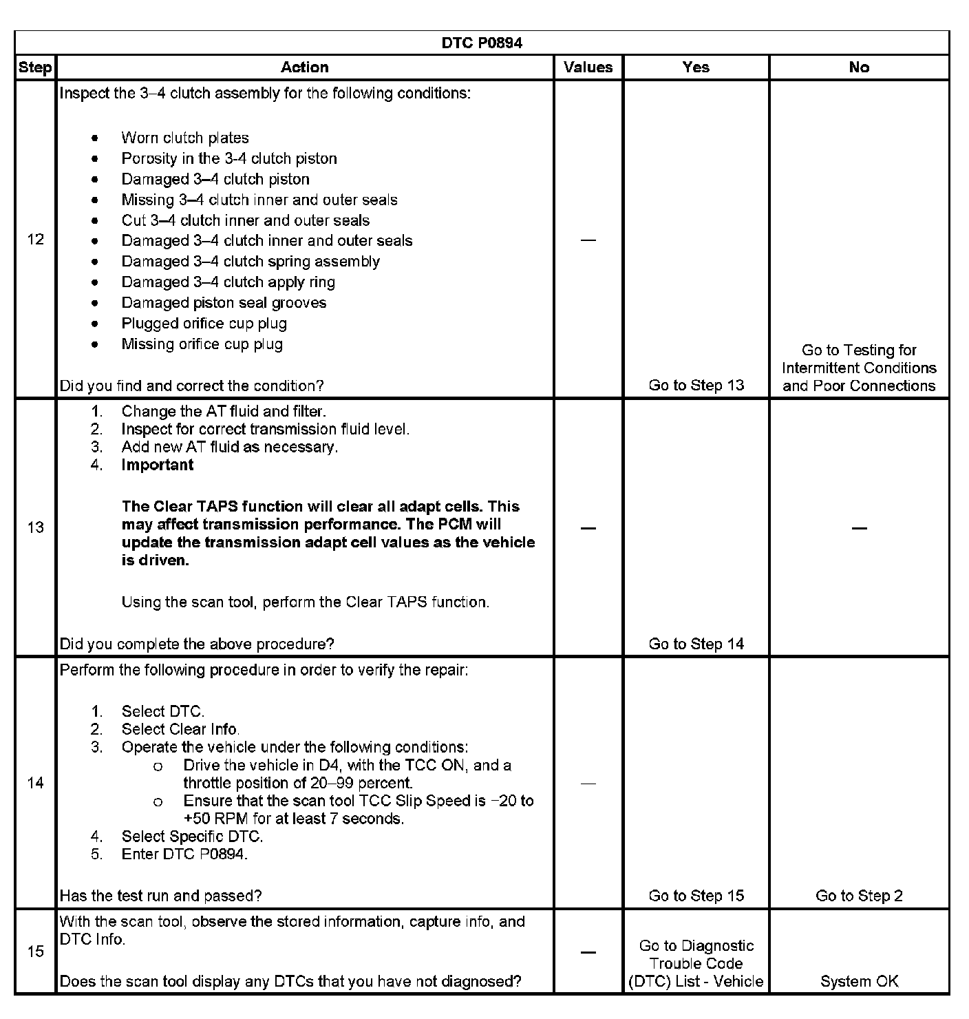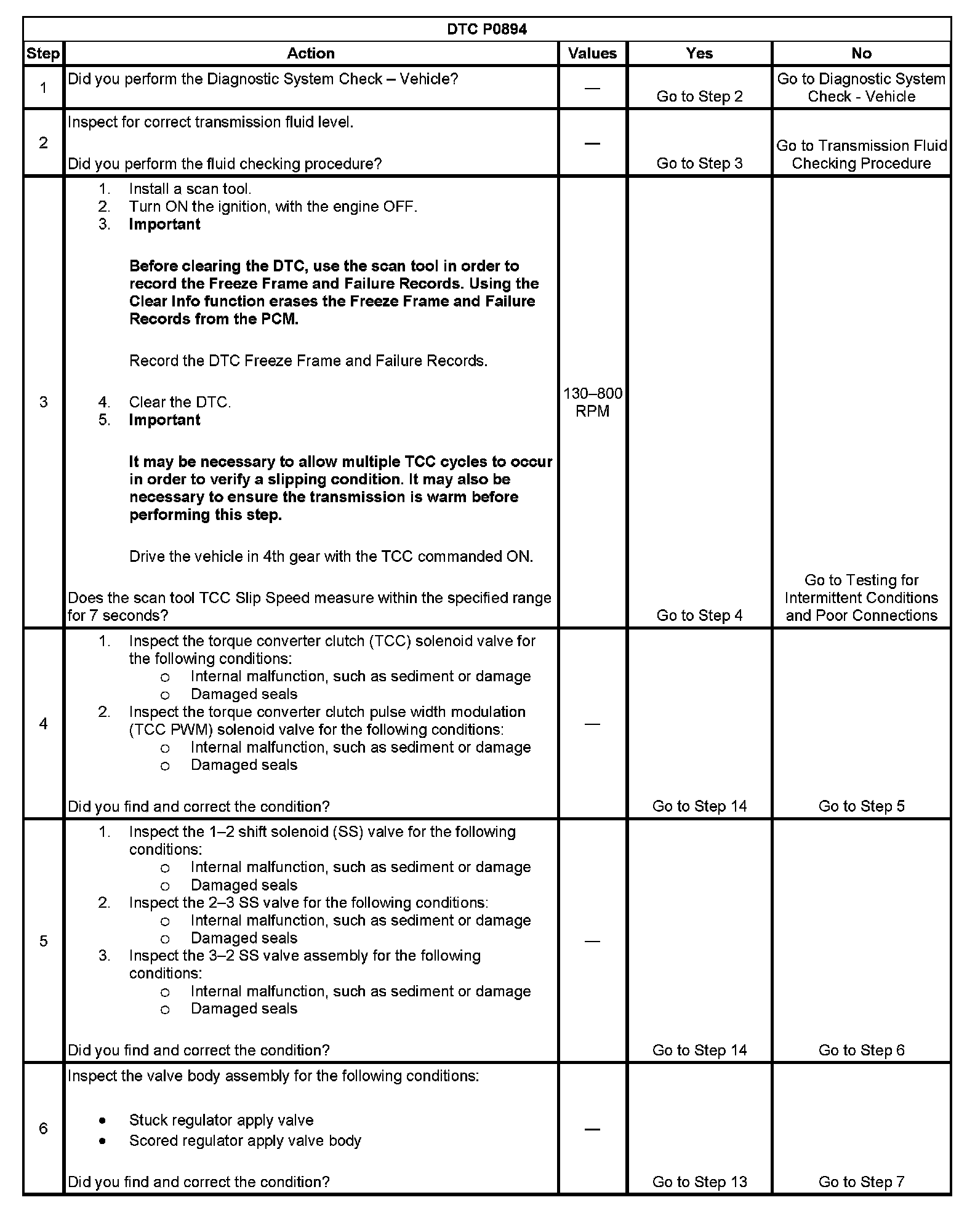 When the PCM detects excessive TCC slip when the TCC should be engaged, then DTC P0894 sets. DTC P0894 is a type B DTC.