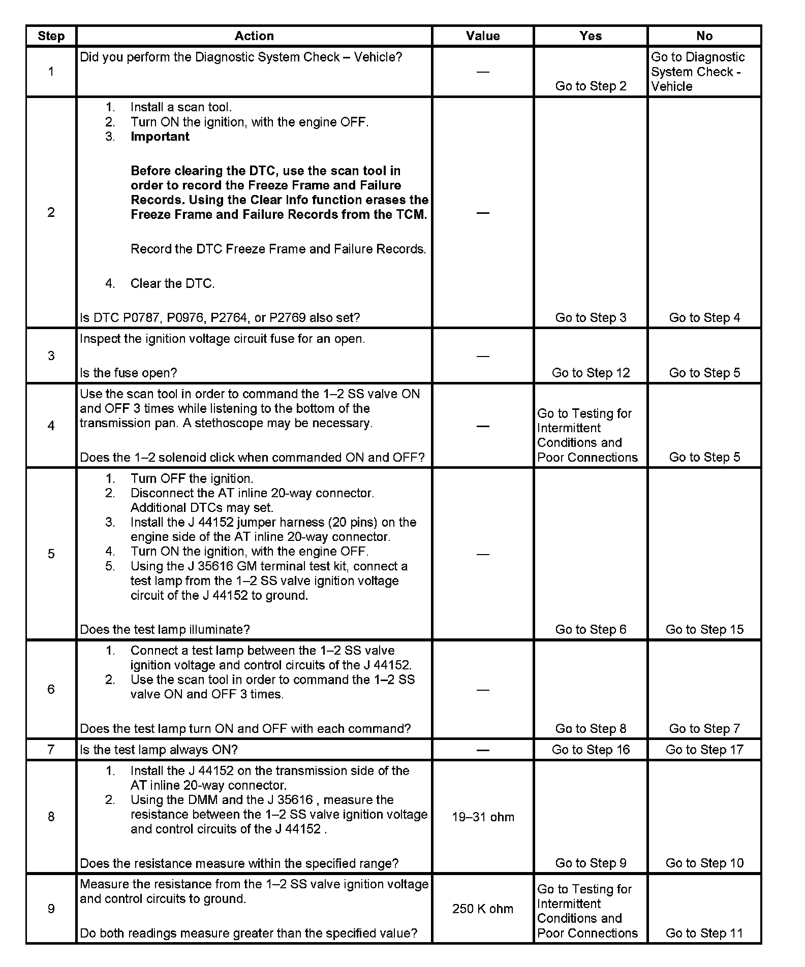 When the TCM detects a continuous open, short to ground in the 1-2 SS valve circuit, then DTC P0973 sets. DTC P0973 is a type B DTC.