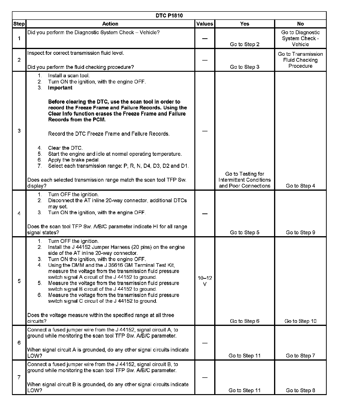 DTC P1810 Transmission Fluid Pressure (TFP) Position Switch Circuit