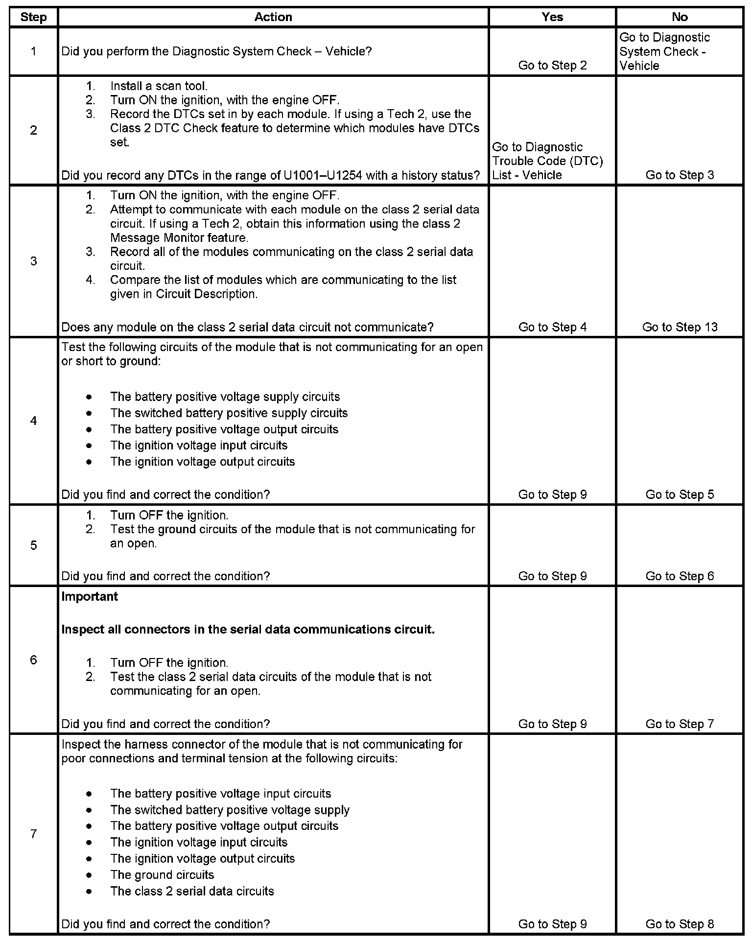 7. The module which was not communicating due to a poor connection to the class 2 serial data circuit may have set DTC U1001 - U1254 Lost Communications with XXX for those modules that it was monitoring.