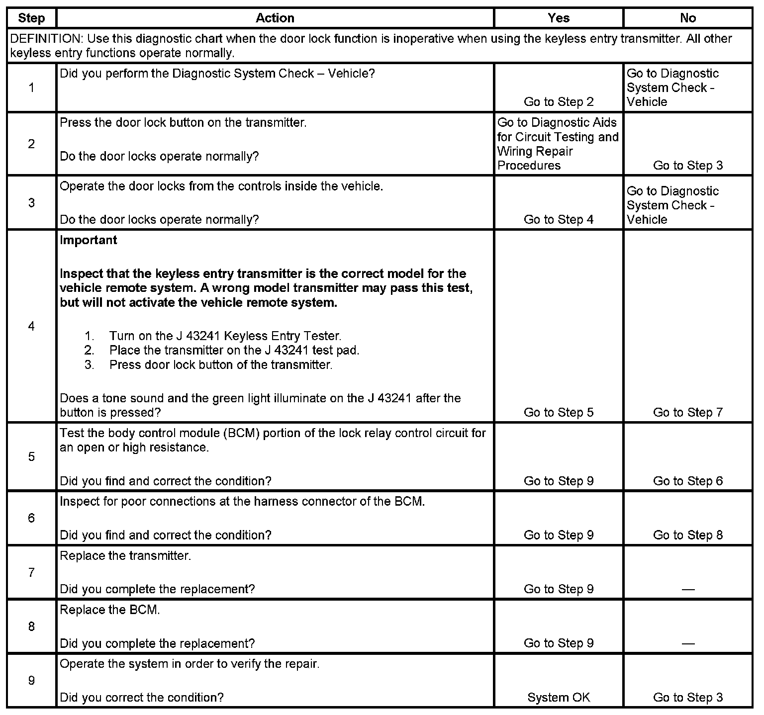 Door Lock Function Inoperative With Transmitter