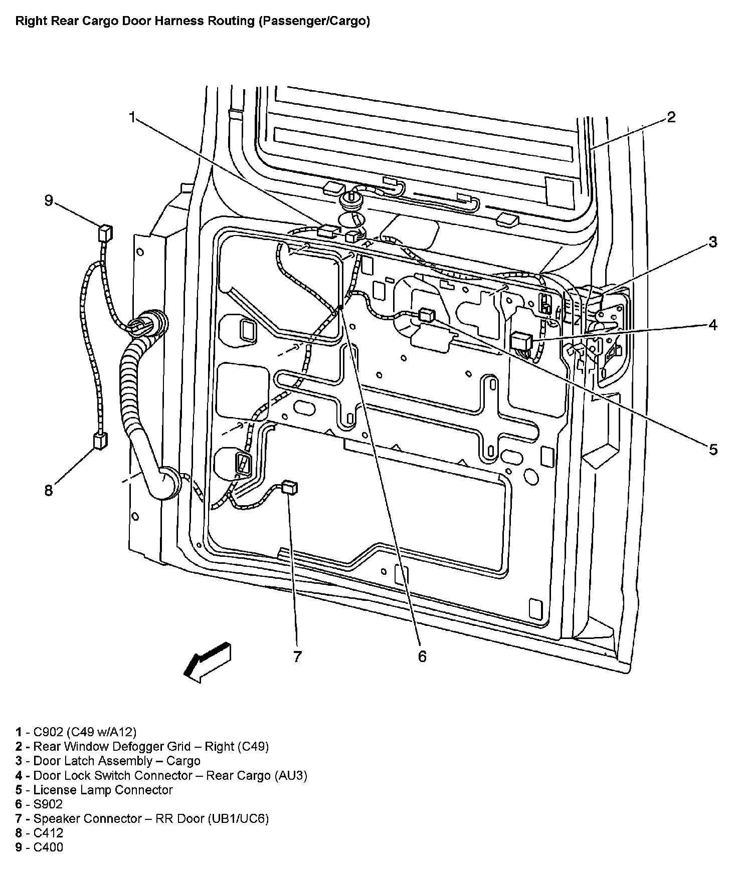 Right Rear Cargo Door Harness Routing (Passenger/Cargo):