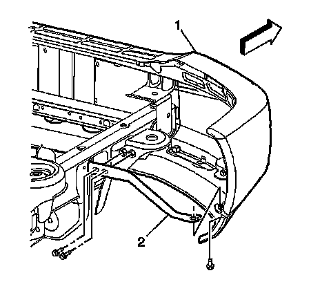 2. Install the bolts that retain the bracket (2) to the bumper (1).