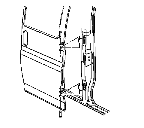 5. Remove the upper and the lower door latches. Refer to Latch Replacement - Side Door Upper (Service and Repair) andLatch Replacement - Side Door Lower (Service and Repair).