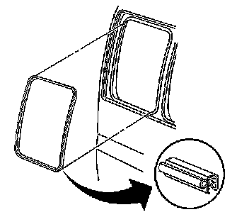 4. Install the hinged body side window. Refer to Hinged Rear Window Replacement (Hinged Rear Window Replacement) in Stationary Windows.