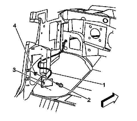 4. Push the cable (1) and the grommet into the cab from the engine compartment.