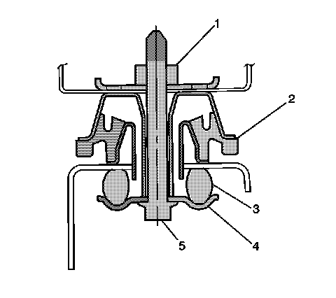 3. Install the bolt (5) to the body mount.