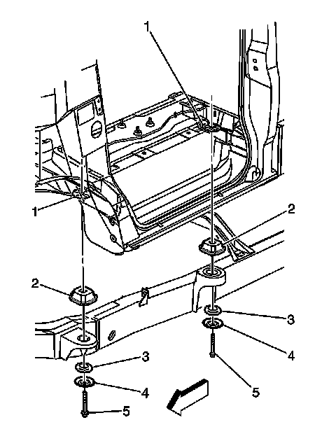 5. Loosen all the body mount bolts (5). Do not remove the bolts.