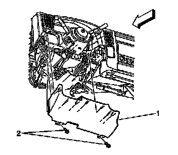 2. Remove the bolts (2) from the lower edge of the instrument panel (I/P) driver knee bolster panel (1).