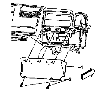 1. Remove the bolts (2) from the lower edge of the instrument panel (I/P) passenger knee bolster panel (1).