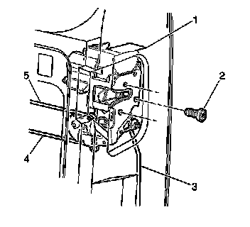 4. Remove the screws (2) that retain the lock (1) to the right side rear door.