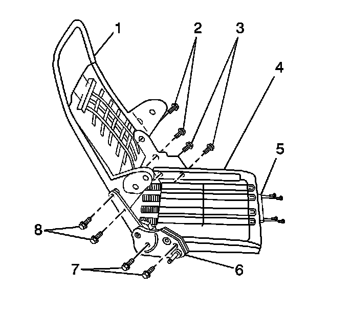 3. Remove the bolts (2,8) from the recliners on the right and left side.