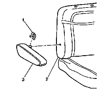 2. Use a small bladed tool release the clip (1) that retains the armrest (3) to the seatback (2).
