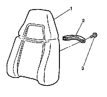 1. Remove the screws (3) that retain the assist handle to the seatback (1).