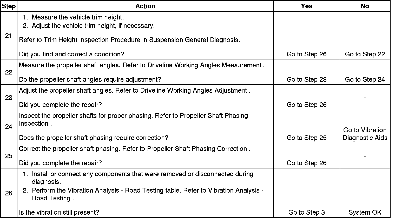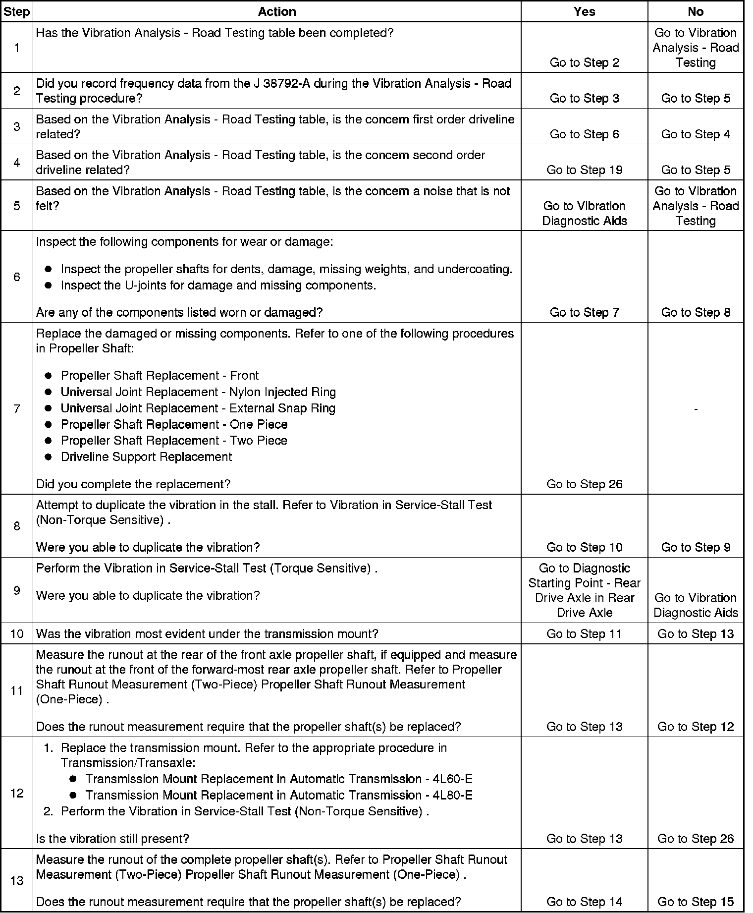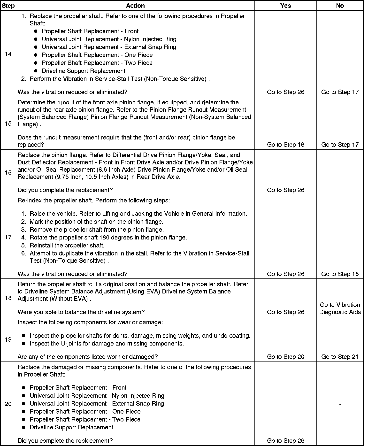 8. First-order driveline related vibrations are usually caused by components that exhibit excessive runout or imbalance. Reproducing a vibration concern in the service stall can aid in pin-pointing the component which may be at fault. (A vibration concern may appear to be either less severe or more severe when duplicated in a service stall, than when duplicated on the road.)