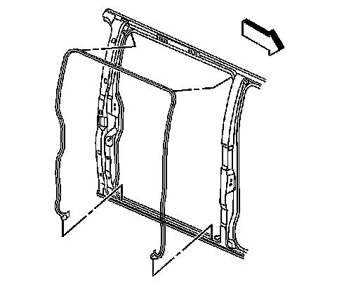4. Remove the passenger side body side trim panel. Refer to Trim Panel Replacement - Right Body Side (Removal and Replacement) in Interior Trim.