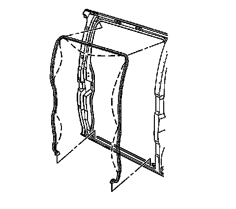 1. Remove the hinge pillar upper garnish. Refer to Garnish Molding Replacement - Upper Pillar (Removal and Replacement) in Interior Trim.