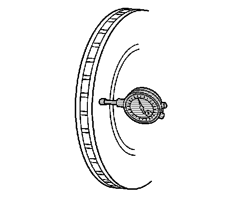10. Mount a dial indicator J 8001 or equivalent, and position the indicator button so it contacts the brake rotor at a 90 degree angle, approximately 13 mm (0.5 inch) from the rotor's outer edge.
