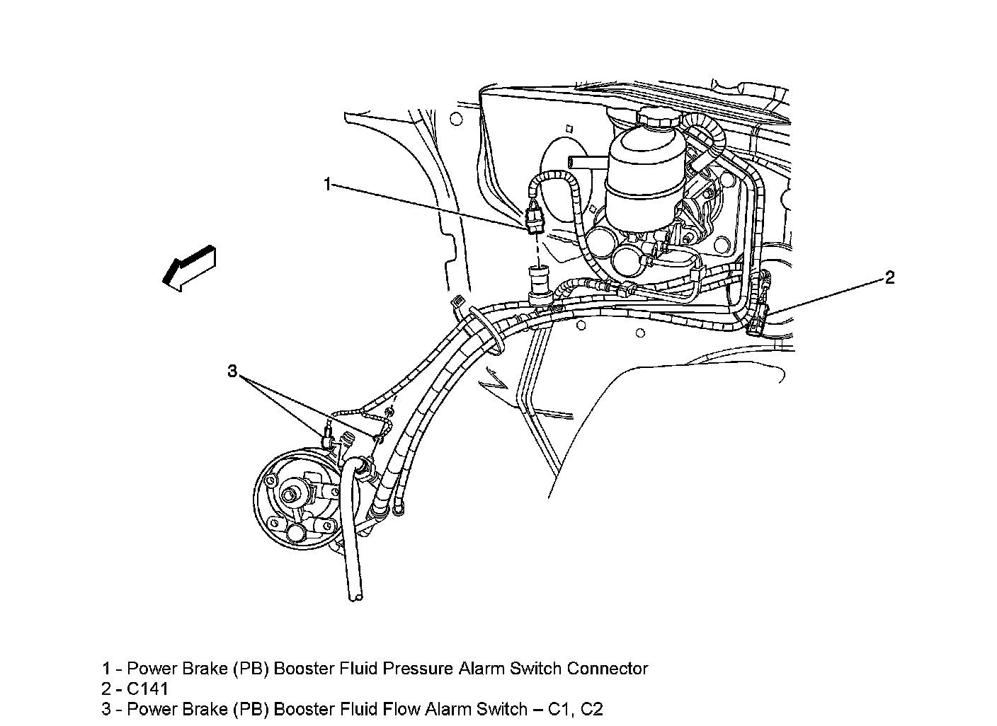 Power Brake (PB) Booster Fluid Alarm Switches Harness Routing (UJ1)
