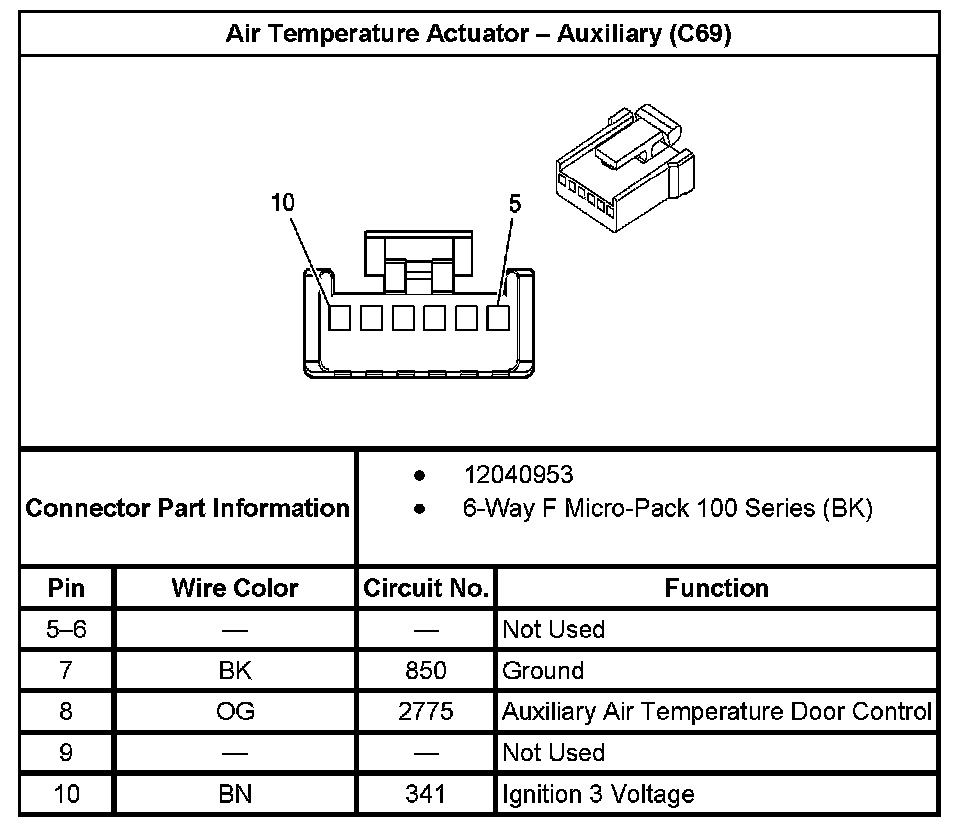 Air Temperature Actuator - Auxiliary (With RPO Code C69):