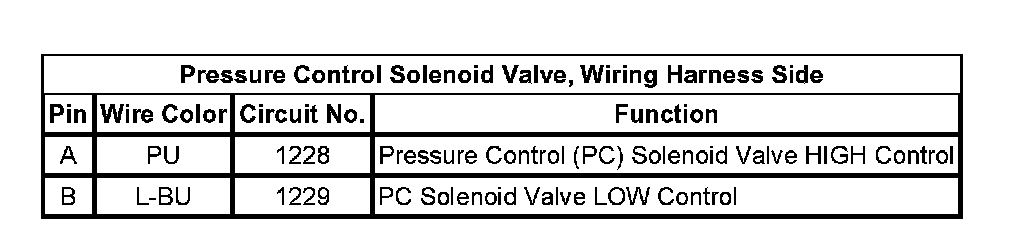 Pressure Control Solenoid Valve, Wiring Harness Side: