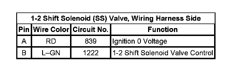 1-2 Shift Solenoid (SS) Valve, Wiring Harness Side: