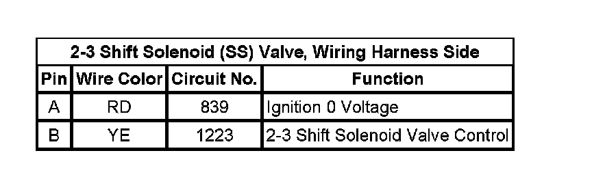2-3 Shift Solenoid (SS) Valve, Wiring Harness Side: