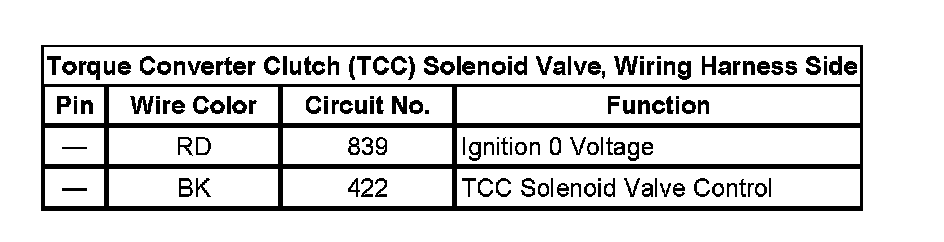Torque Converter Clutch (TCC) Solenoid Valve, Wiring Harness Side