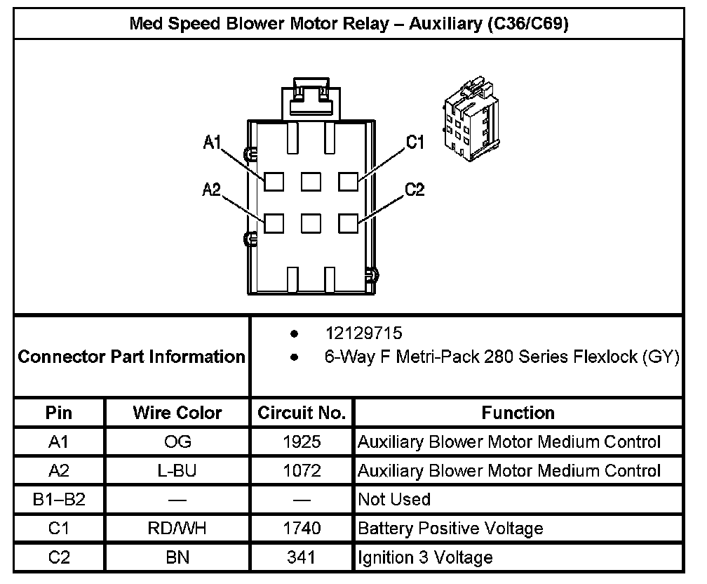 Med Speed Blower Motor Relay - Auxiliary (With RPO Code C36/C69):