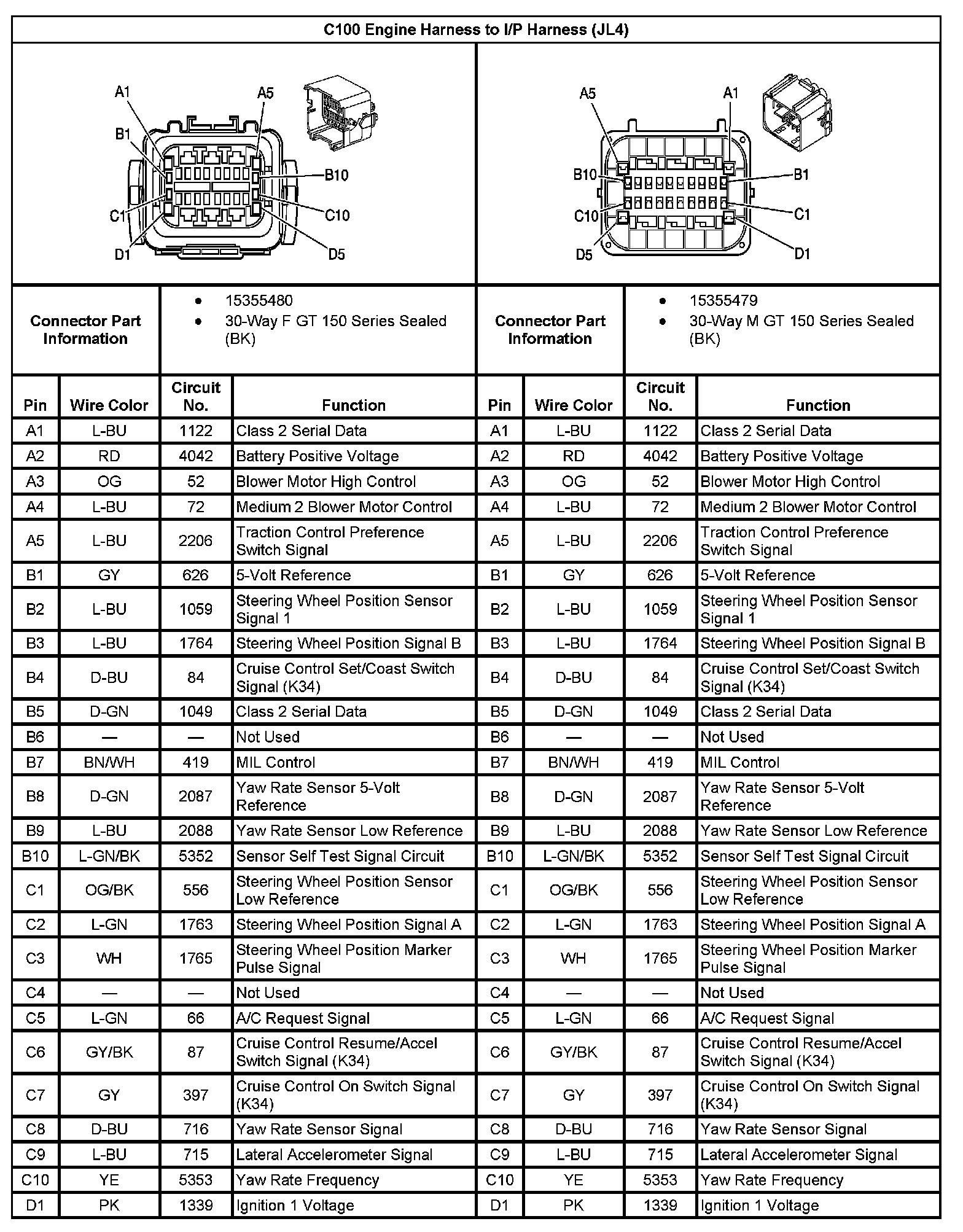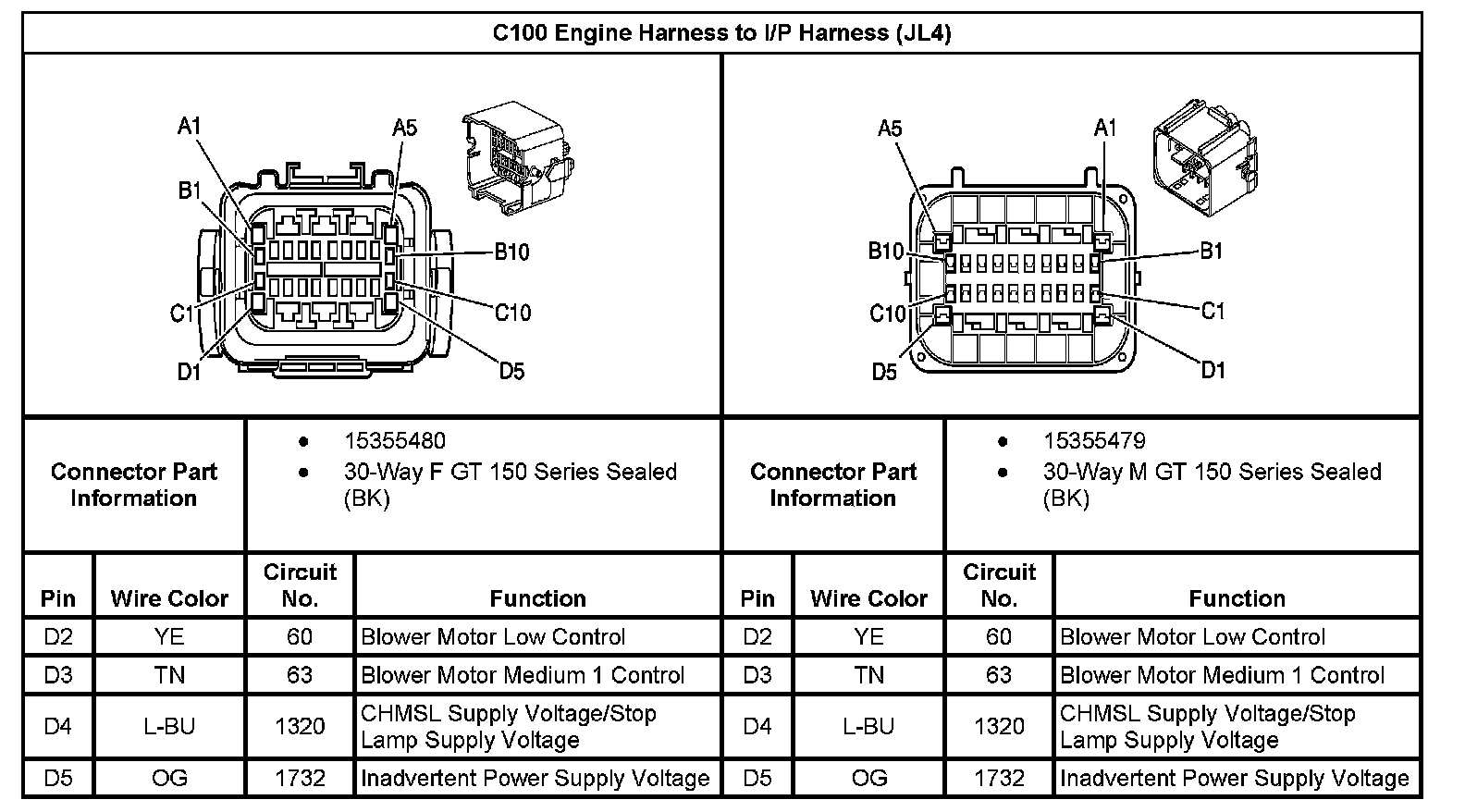 C100 I/P Harness To I/P Harness ( With RPO Code JL4) (Part 2):