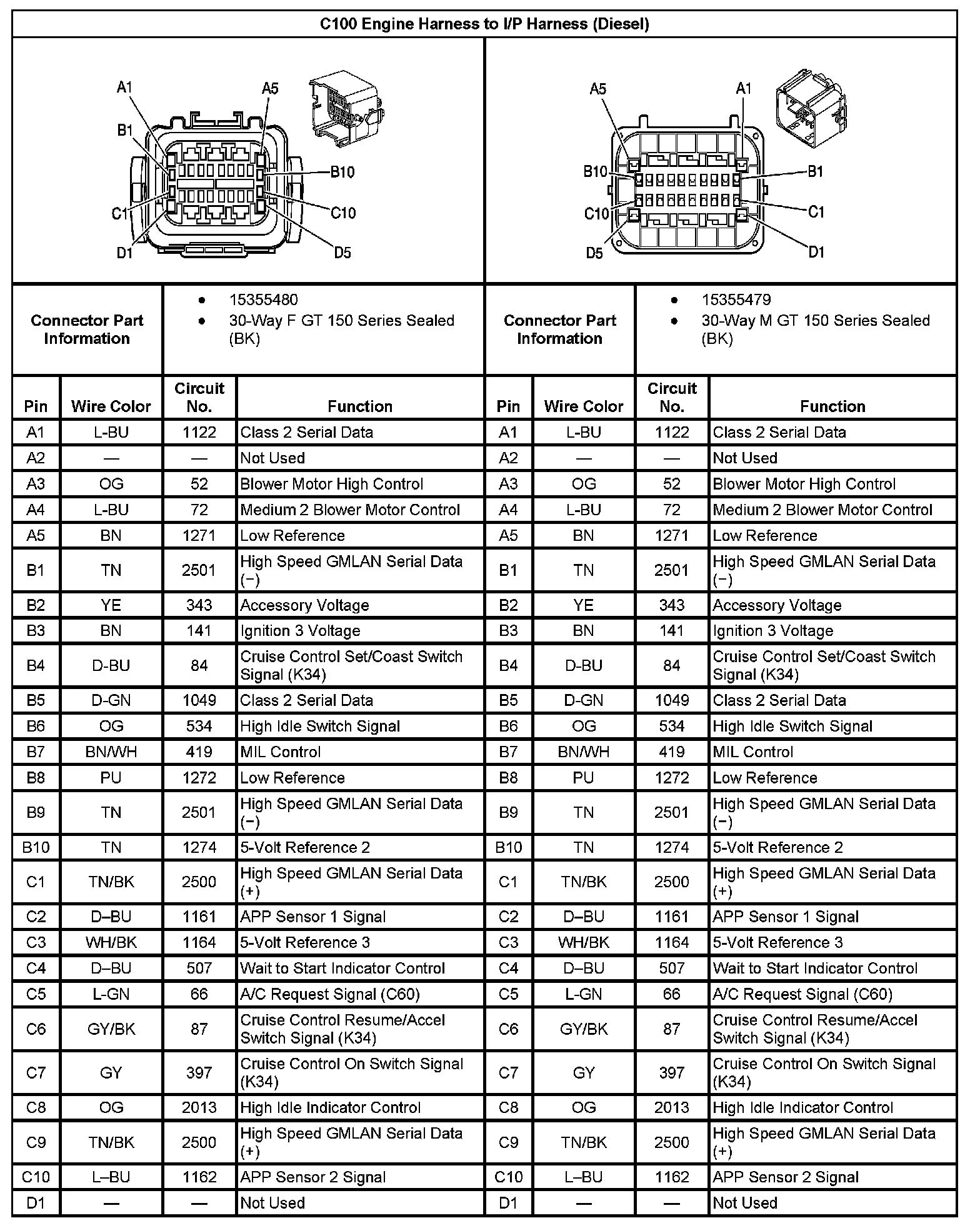 C100 I/P Harness to I/P Harness (Part 1):