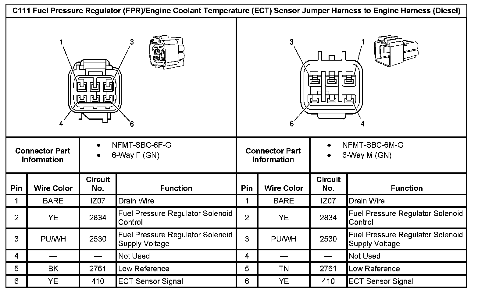 C111 Fuel Pressure Regulator (FPR)/Engine Coolant Temperature (ECT) Sensor Jumper Harness to Engine Harness: