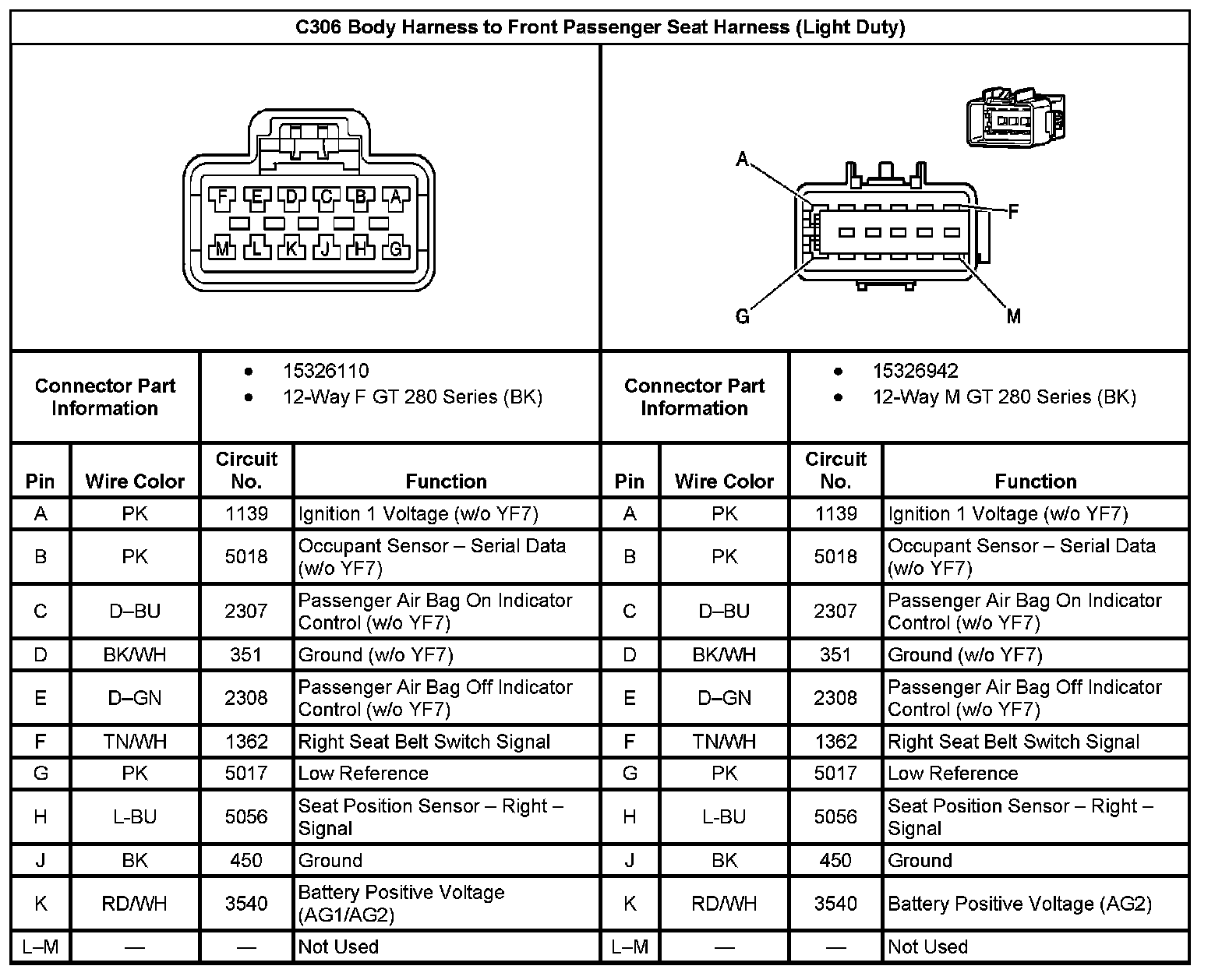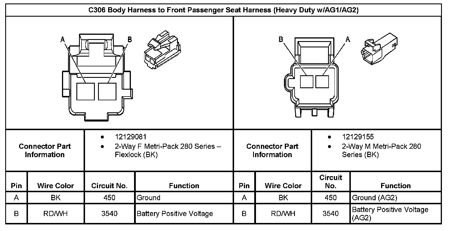 C306 Body Harness to Front Passenger Seat Harness (Heavy Duty With RPO Code AG1/AG2):