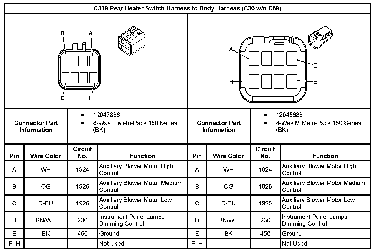 C319 Rear Heater Switch Harness to Body Harness (With RPO Code C36 Without RPO Code C89):