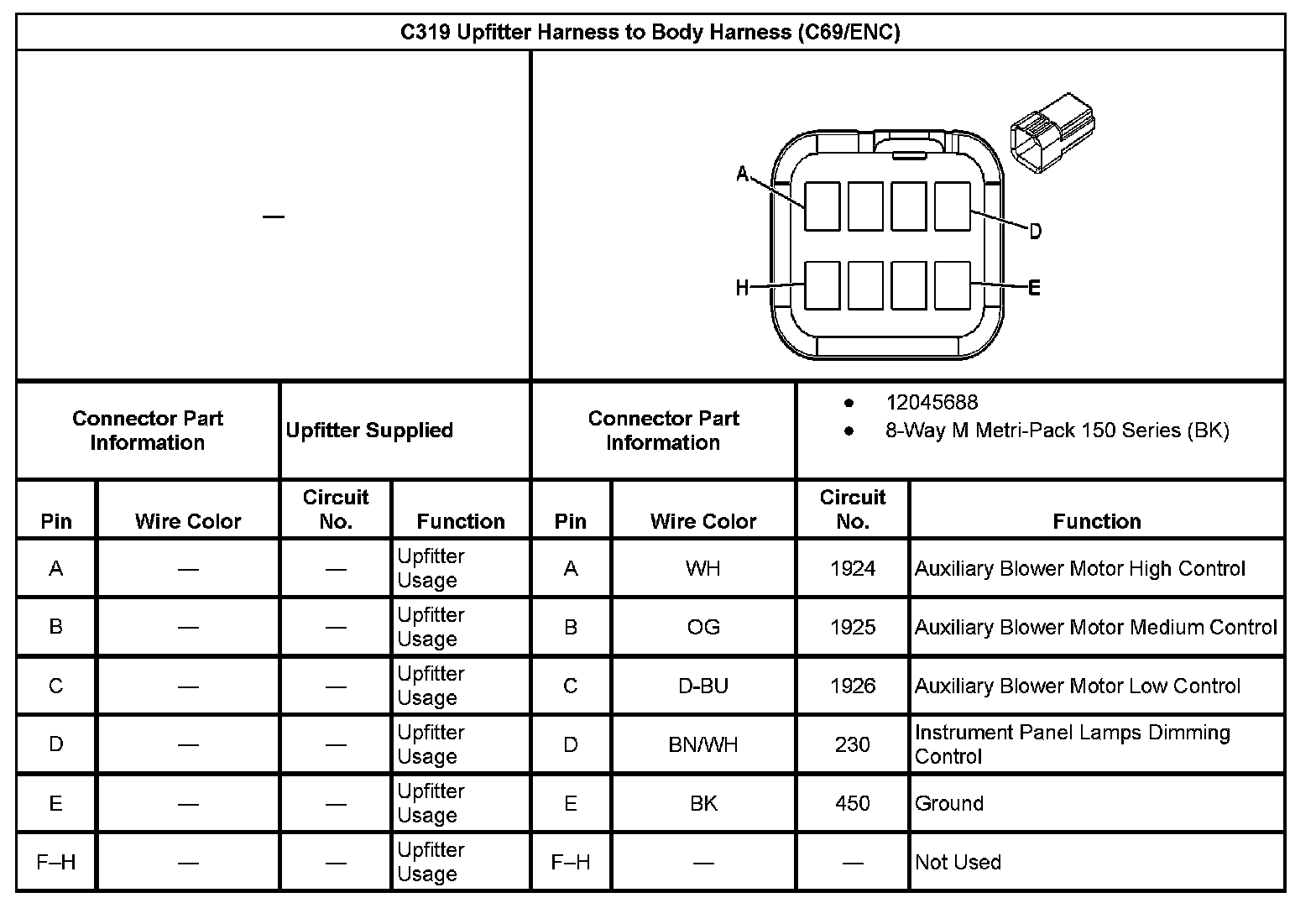 C319 Upfitter Harness To Body Harness (With RPO Code C69/ENC):