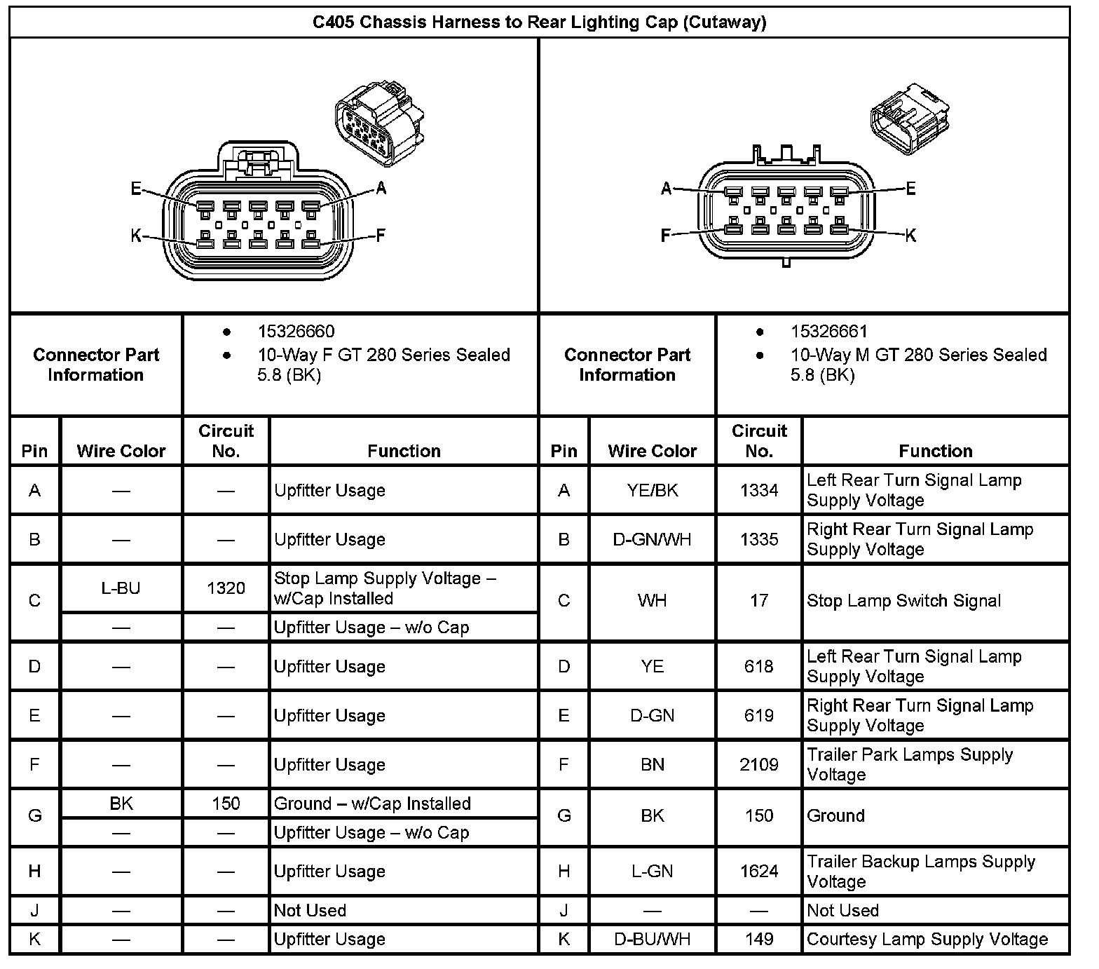 C405 Chassis Harness to Rear Lighting Cap (Cutaway):