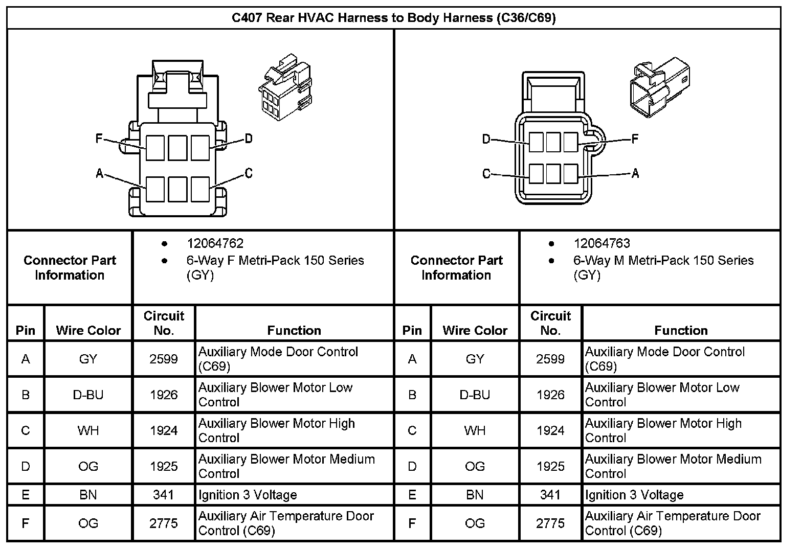 C407 Rear HVAC Harness to Body Harness (With RPo Code C36/C89):