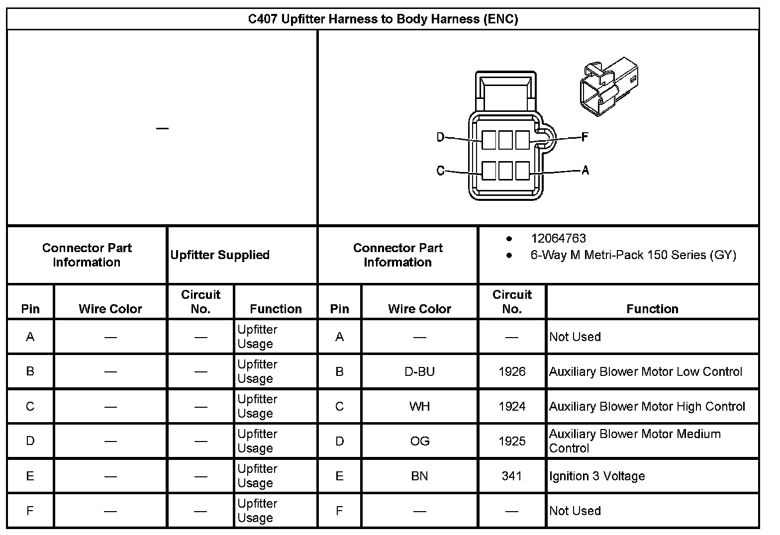 C407 Upfitter Harness To Body Harness (With RPO Code ENC):